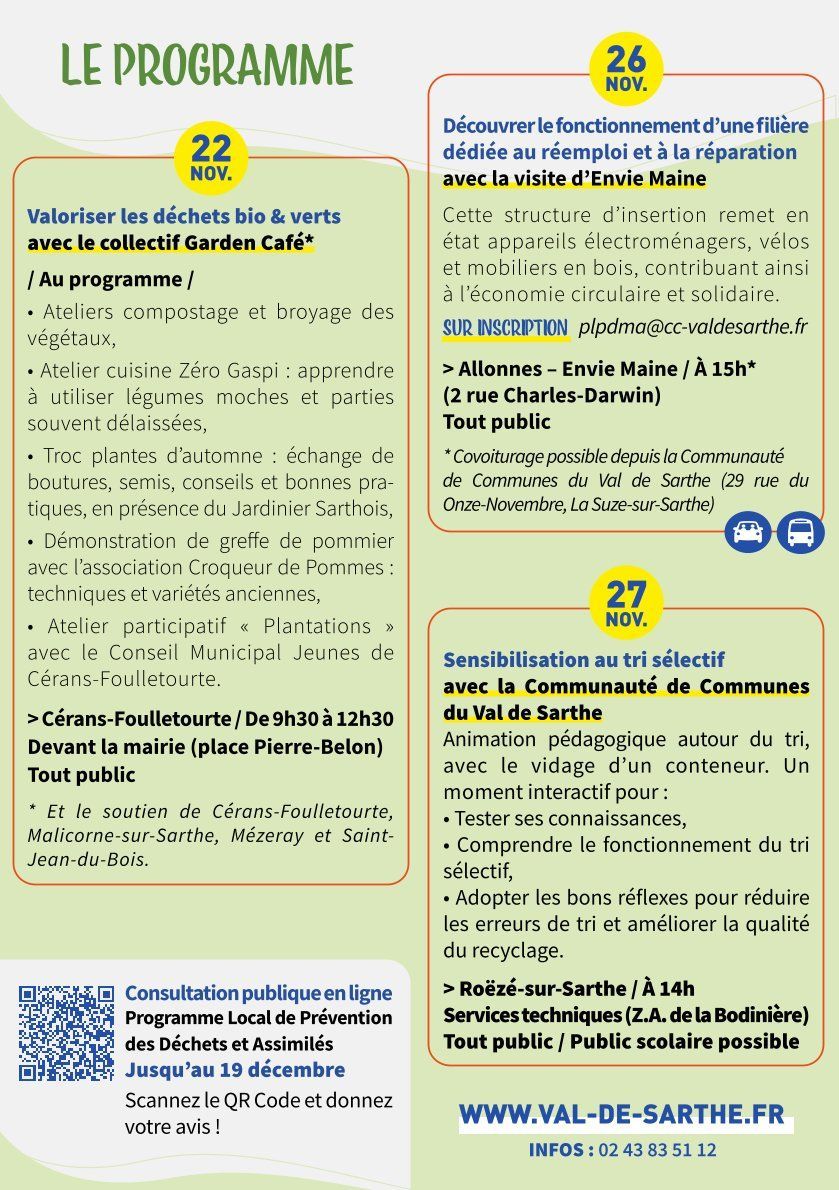 Dans le cadre de la Semaine Européenne de la Réduction des Déchets (SERD), du 22 au 30 novembre 2025, la Communauté de Communes du Val de Sarthe se mobilise pour encourager des gestes simples et durables.