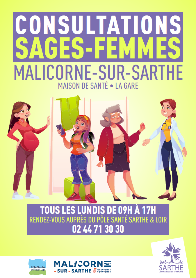 À partir du 06 octobre 2025, le Pôle Santé Sarthe-Loir assurera des consultations de sage-femmes à la Maison de santé de Malicorne-sur-Sarthe tous les lundis de 09h à 17h00